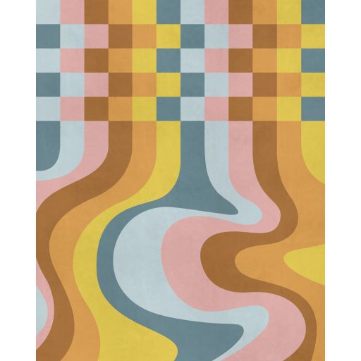 Káróból absztraktba! Lenyűgöző izgalmas grafikus faldizájn kék sárga barna rózsaszín és világoskék tónus falpanel