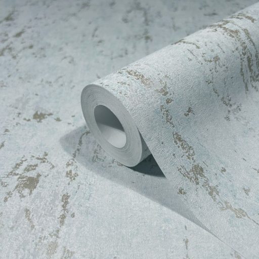 Koptatott strukturált minta fémes díszítéssel világoskék/szürkéskék és arany tónus tapéta