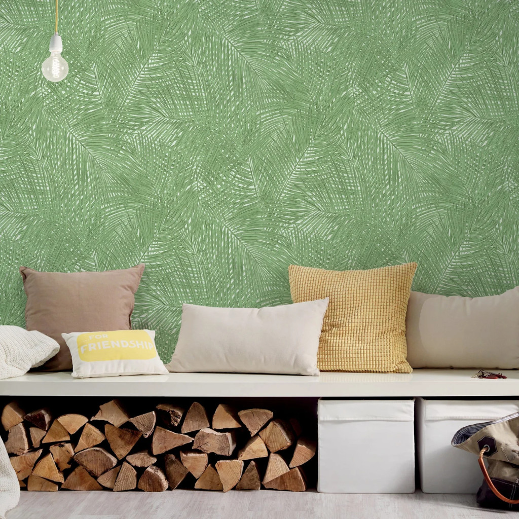 Tipp : Lélegzetelállító trópusi álom a falon. A pálmalevelek finom, egymásba fonódó mintázata