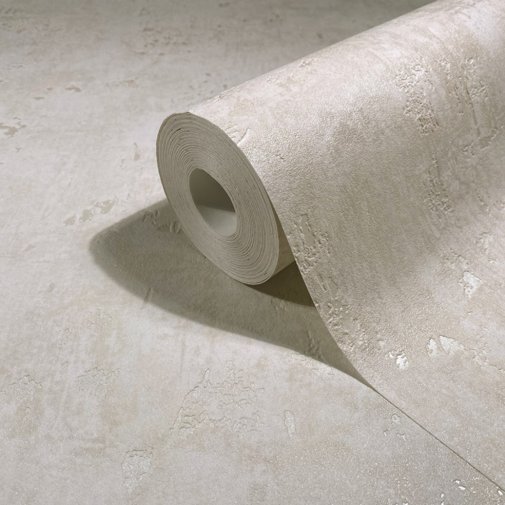 Loft megjelenés kifinomult és letisztult betonhatású mintával krém bézs és szürkésbézs tónus finom fényű részletek tapéta