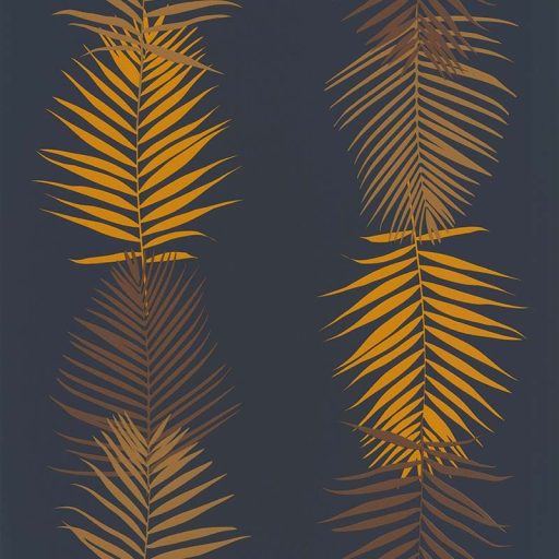 Lutece California Nostalgie 51173101 FEUILLE PALME NAVY Natur Trópusi pálmalevelek panelszerű megjelenés tengerészkék aranysárga barna tapéta