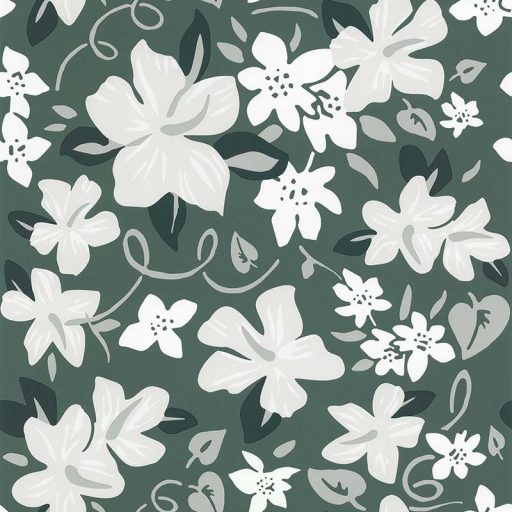 Lutece California Nostalgie 51200704 HAWAI KHAKI Natur Virágos stilizált szirmok zöld világosszürke fehér sötétzöld finom csillogás tapéta