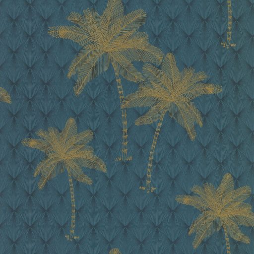 Lutece Jardin d'Eden 51202701 PALMIER Natur Trópusi geometrikus art deco háttéren pálmafák kék árnyalatok arany tapéta