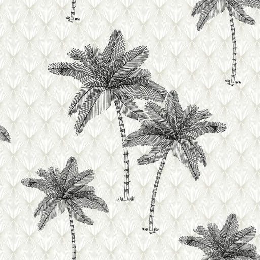 Lutece Jardin d'Eden 51202709 PALMIER NOIR Natur Trópusi geometrikus art deco háttéren pálmafák fehér szürkésbézs fekete tapéta