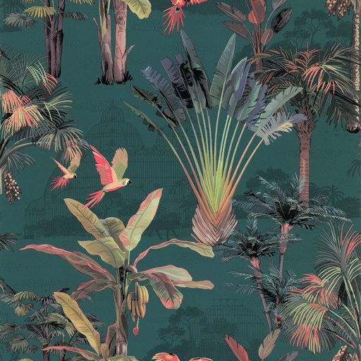 Lutece Jardin d'Eden 51203314 JALAPA VERT EMERAUDE Botanikus Trópusi dzsungel papagájokkal smaragdzöld szines tapéta