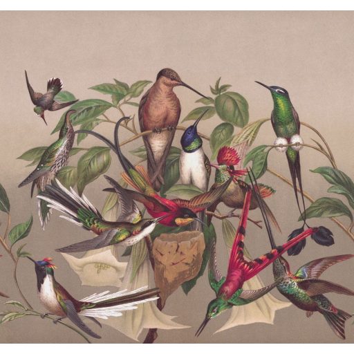Madárfészek - egzotikus trópusi madarak szürkésbarna zöld szines falpanel