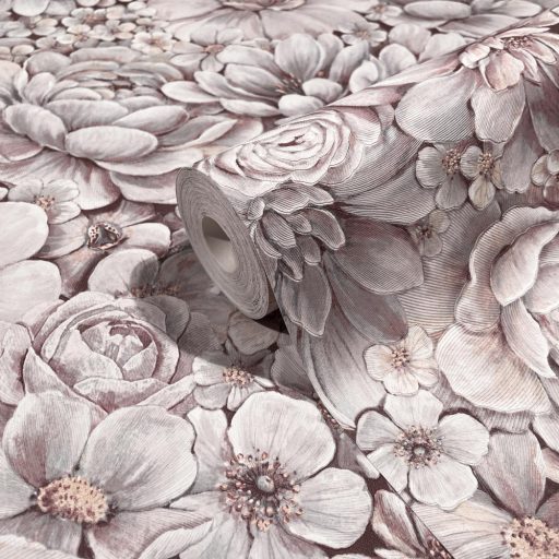Marburg Botanica 33954 Botanikus Pazar virágmotívum valóságos virágtenger törtfehér ó-rózsaszín ezüst tapéta