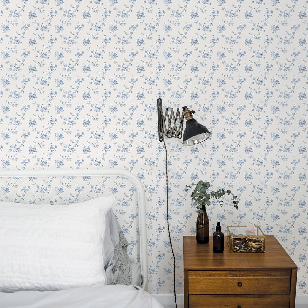 mégis könnyed, mintha egy régi porcelánmintát elevenítene meg a falon. A vintage hangulat
