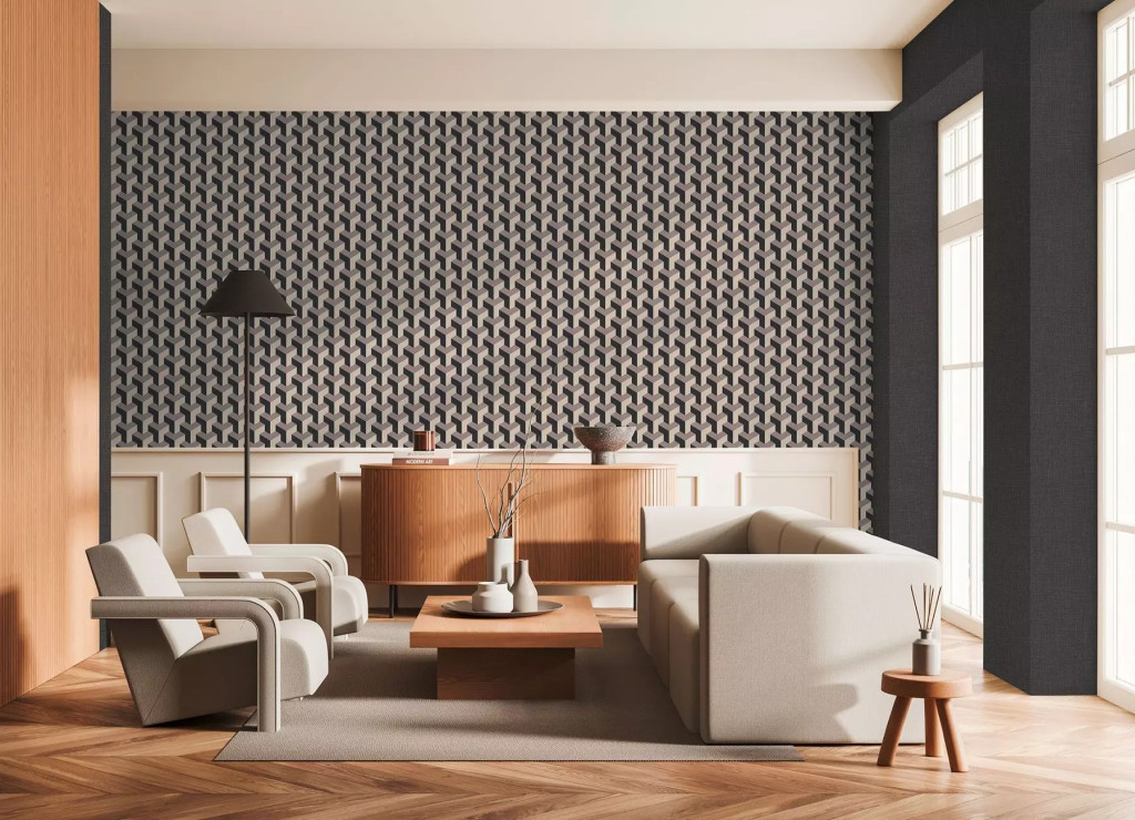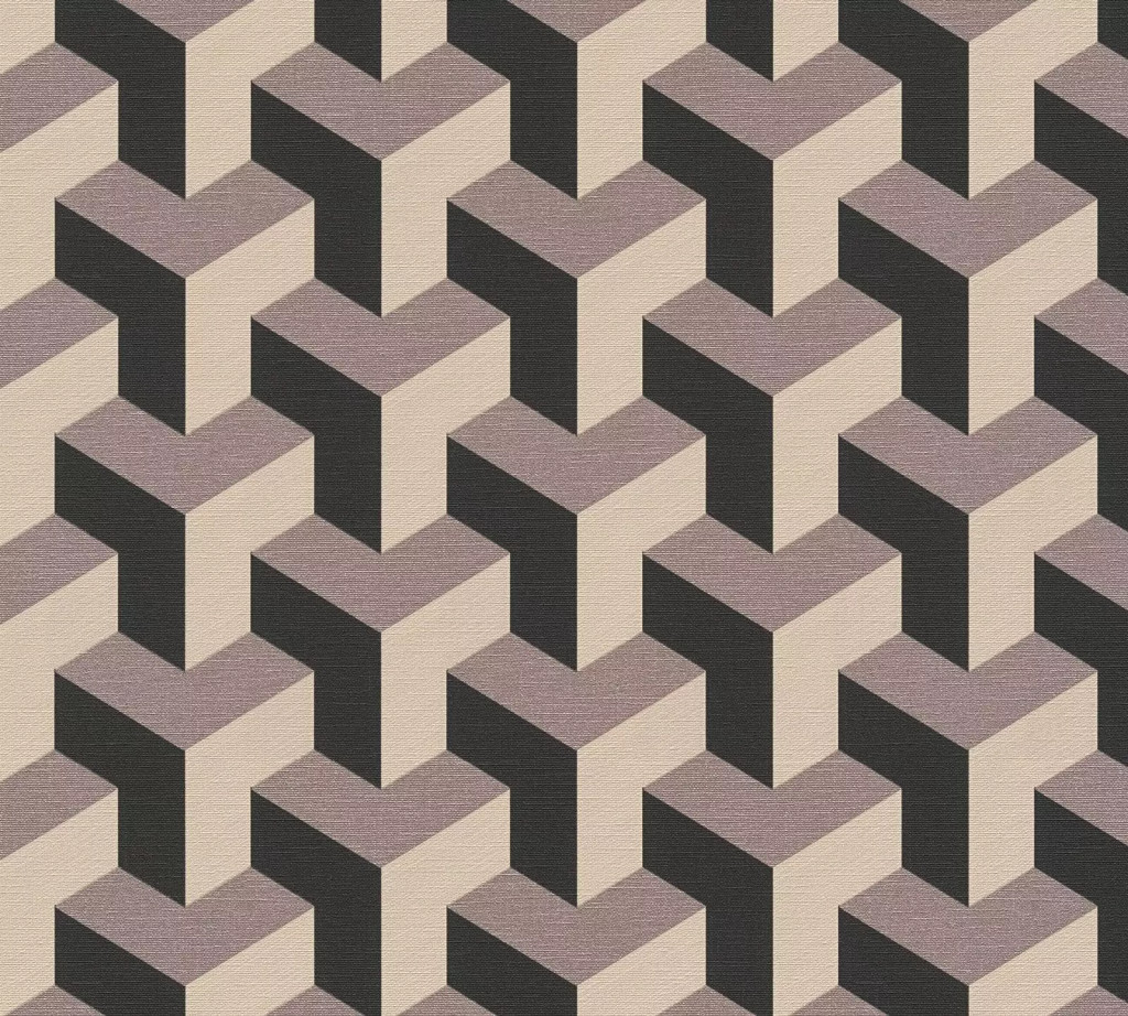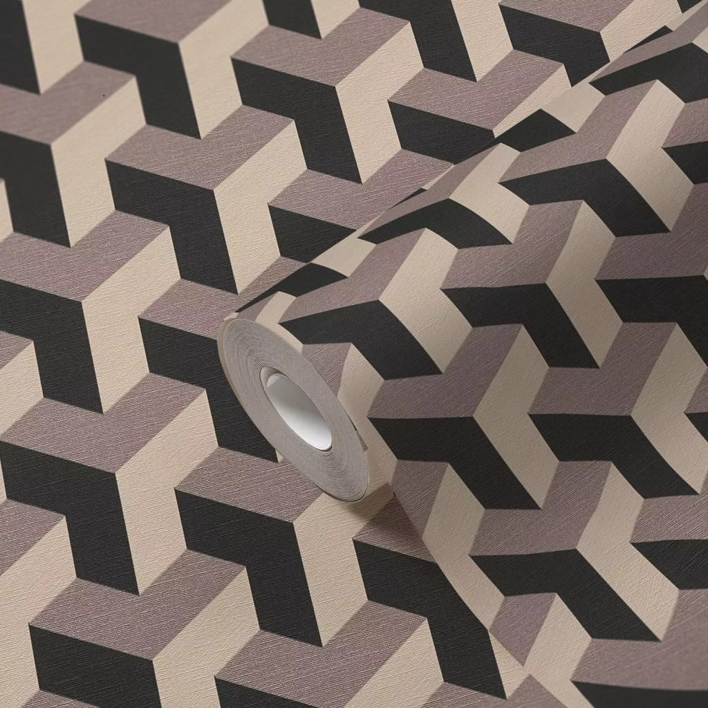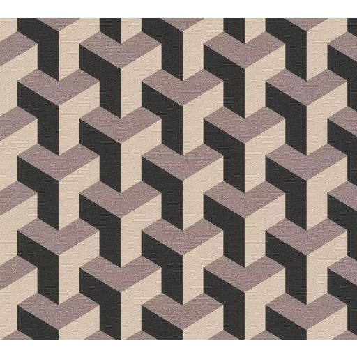 Modern geometrikus háromdimenziós minta bézs szürkéslila és fekete tónus tapéta
