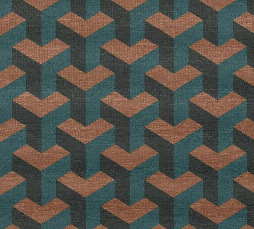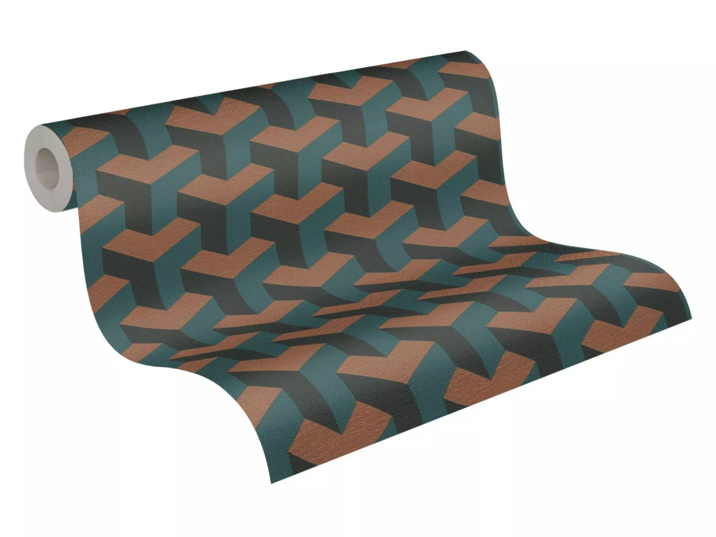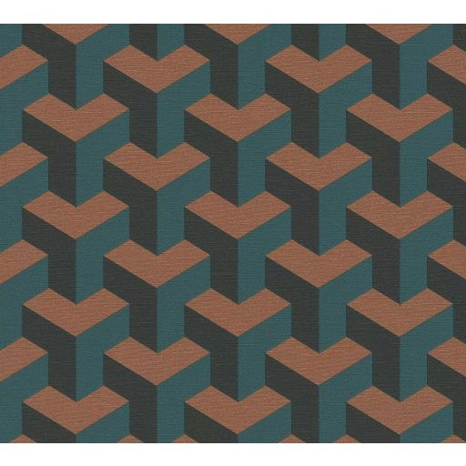 Modern geometrikus háromdimenziós minta türkiz petrol zöld és réz/bronz tónus tapéta