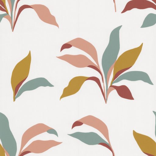 Naív levelek grafikus művészi ábrázolásban krém barack mustársárga zöld tapéta