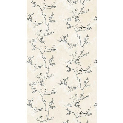 Naturális grafikai megjelenés minimalista virágágakkal és madarakkal krém fehér és fekete tónus falpanel