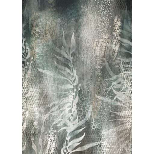 Organikus levélminta reptil /hüllő/ bőrét utánzó textúrán fehér szürke szürkésbarna és zöld tónus falpanel