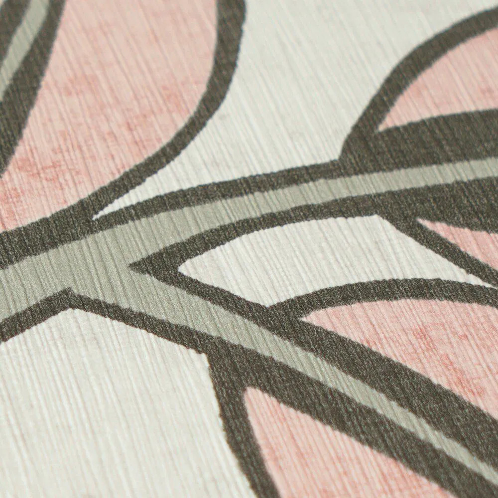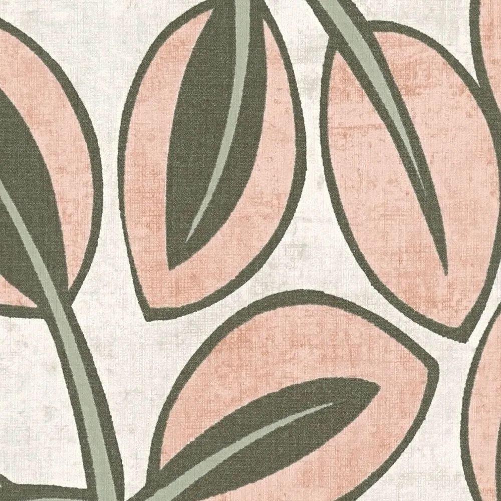 levelek hintáznak finom vonalakkal a törtfehér alapon. A lágy korall-