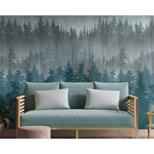 Pazar természeti kép - ködös fenyőerdő különböző szintjei és színei petrolzöld kék és szürke tónus falpanel