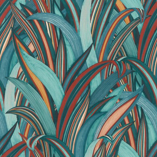 Rasch Amazing 541250 Natur Botanikus Stilizált illatos sárkányfa levélzete vízkéktől a vörösig japán kéktől a mély sárgáig szines tapéta