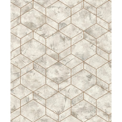 Rasch Andy Wand 649642 Geometrikus grafikus 3D hatszögek kombinációja betonhatású alapon fémes gyöngyház világosszürke szürkésbarna tapéta