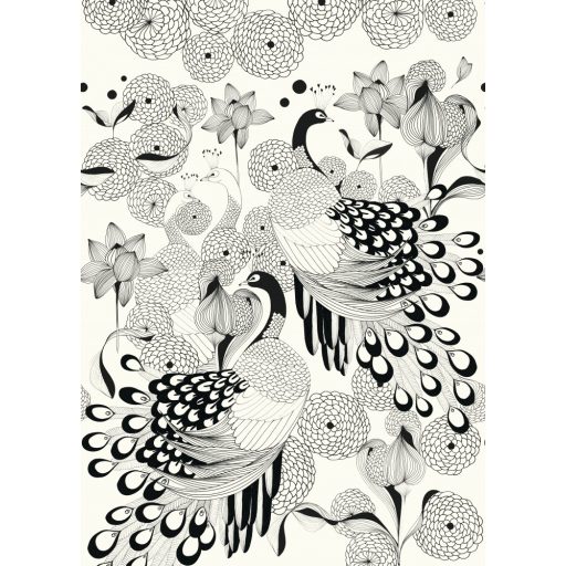 Rasch Club Botanique 539165 Natur stilizált pávák tollazata egzotikus virágok fehér fekete falpanel