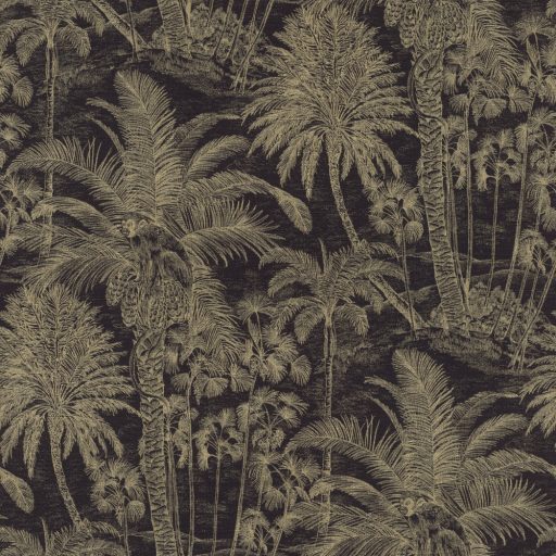 Rasch Denzo II 832525 Natur trópusi magas pálmafák majmokkal fekete bézsarany/arany finom csillogás tapéta