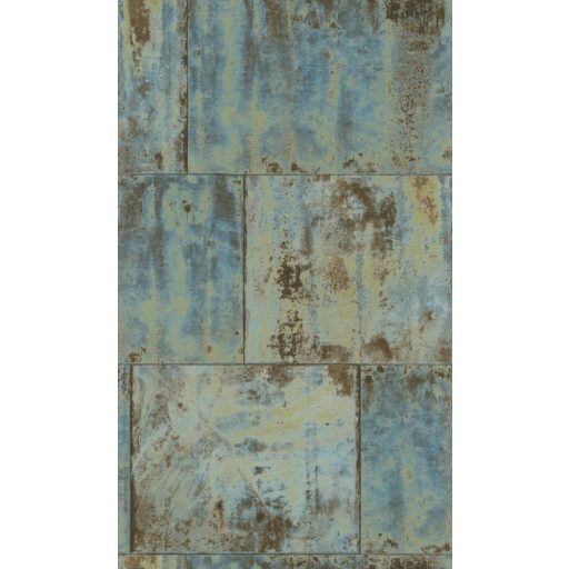 Rasch Factory III, 939712  Vintage patinás acéllemez kék türkiz bézs barna tapéta
