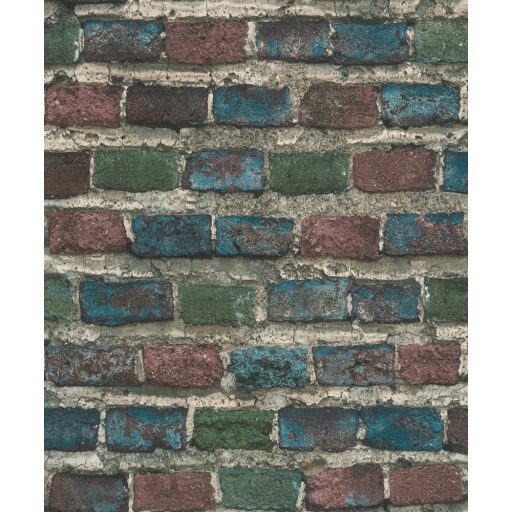 Rasch Factory IV 428070 Natur/Ipari design meszelt érdes felületű téglafal szürke kék zöld rozsdavörös tapéta