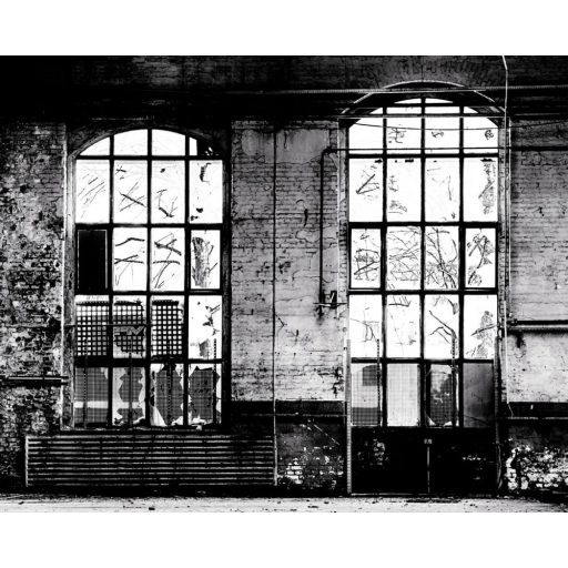 gyárépület részlete hatalmas ablakokkal, csövekkel, acél