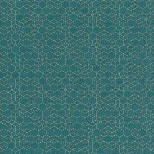 Rasch Highlands 550368  Geometrkius kockák láncolata petrolzöld csillogó arany tapéta