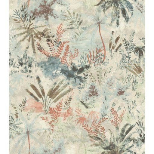 Rasch Poetry II 543025 Natur Organikus textil pálma páfrány bokor krém bézs rózsaszín kék zöld korall tapéta
