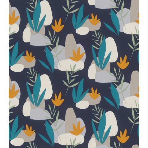 Rasch SALSA 463453 Natur Absztrakt grafikus stilizált növények kövek éjkék fehér világosszürke galambkék türkiz narancs tapéta
