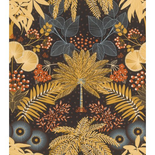 Rasch SALSA 465730 Natur Botanikus "tüzijáték" virágokból és levelekből fekete okkersárga téglavörös galambkék fehér tapéta