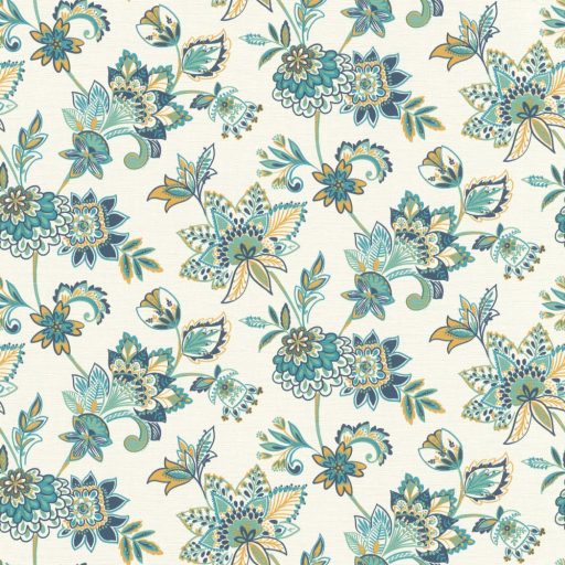 Rasch SALSA 466737 Natur Botanikus keleties hatású virágminta krémfehér okkersárga éjkék benzin és türkizzöld tapéta
