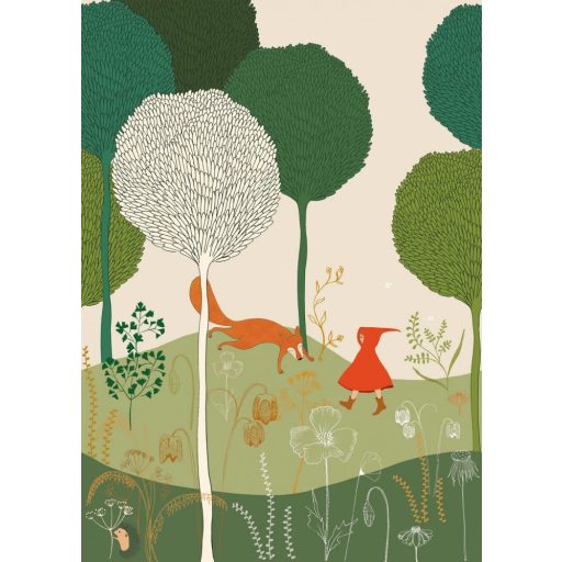 Rasch Studio Onszelf Stories 557480 Gyerekszobai "Népszerű mese" Piroska és a Róka zöld piros szines falpanel