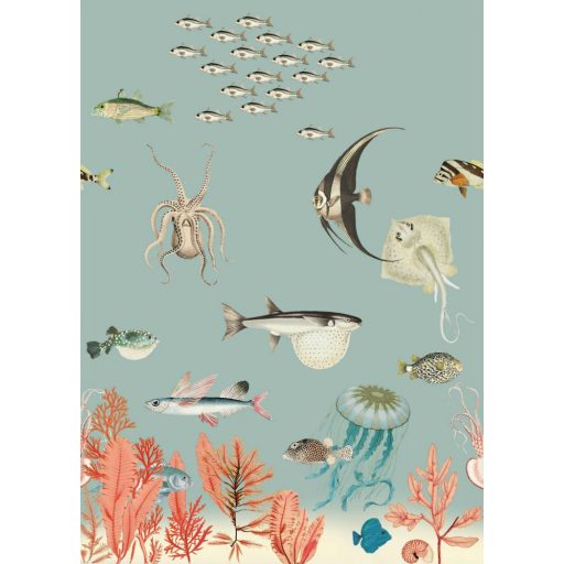 Rasch Studio Onszelf Stories 557497 Gyerekszobai Mélytengeri élővilág világoskék korallszín szines falpanel
