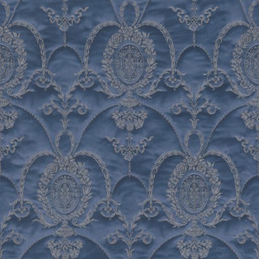 Rasch Trianon XII, 532159 klasszikus királyi díszítőminta bársonyos megjelenés hímzett díszek kék szürkéskék bézsarany tapéta