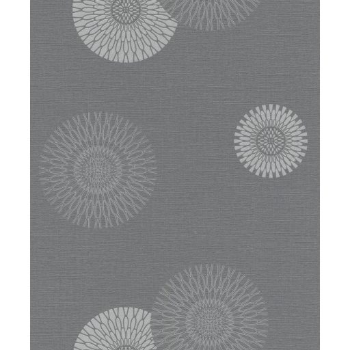 Rasch #tapetenwechsel 808803 grafikus stilizált virágkörök antracit ezüst tapéta