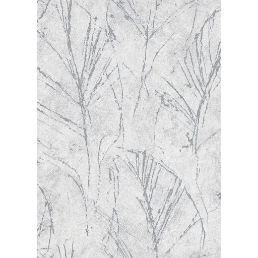 "Rejtőzködő" levélmotívum vázlatos ábrázolás filigrán vonalak világosszürke és ezüst tónus fémes hatás tapéta