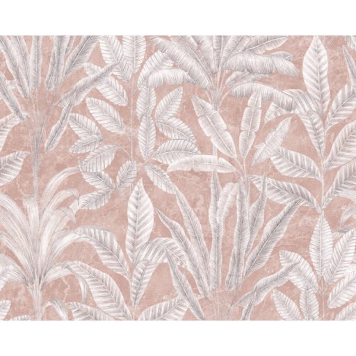 Részletesen kidolgozott trópusi levélmotívum antik rózsaszín/halvány korall fehér bézs és szürke tónus falpanel