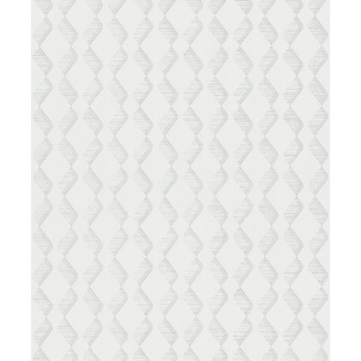 Rombuszformát kialakító grafikus minta textil háttéren fehér és ezüst tónus fémes csillogó hatás tapéta