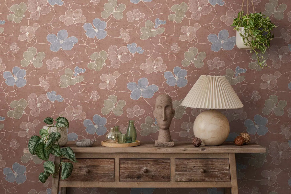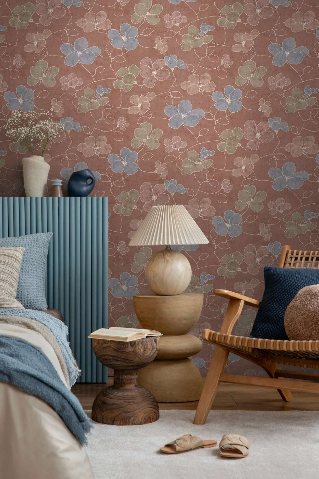 amelyek finoman simogatják végig a teret. A terrakotta alapszín meleg