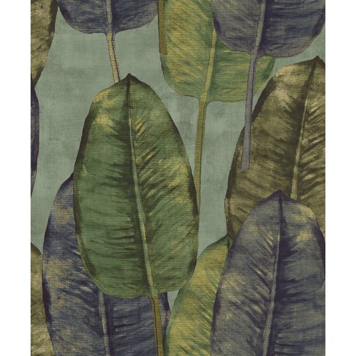 Szemet gyönyörködtető trópusi levelek szürkészöld barna aranysárga zöld és kék tónus tapéta