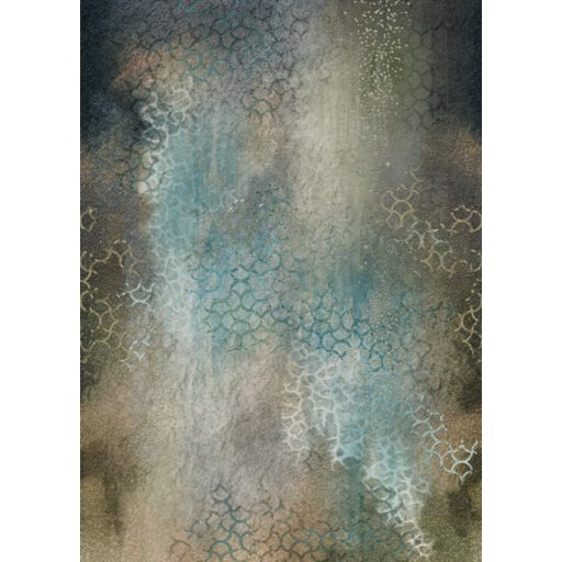 Színátmenetes beton mintázat keleties díszítéssel türkiz kékeszöld barna szürkésbarna és sötétkék tónus falpanel