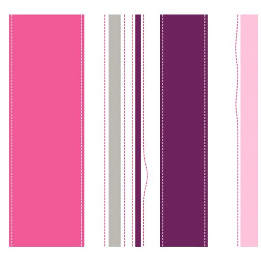 Színes és változatos csíkos minta fehér rózsaszín lila és fémes ezüst tónus gyerekszobai tapéta