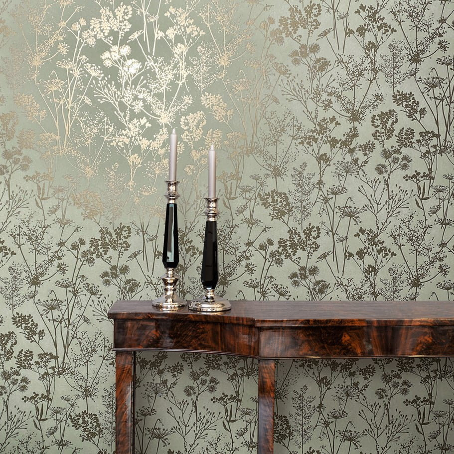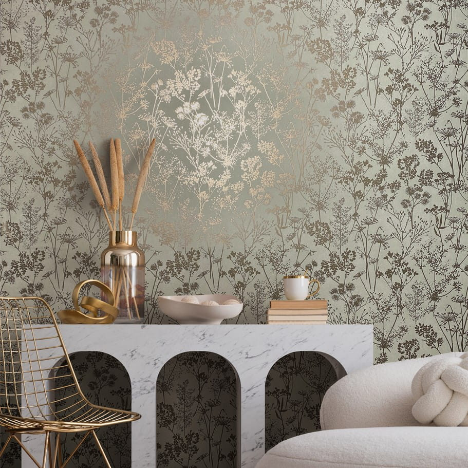 Tipp : A hűvös pasztellzöld alap és a meleg taupe virágmintázat olyan, mint amikor