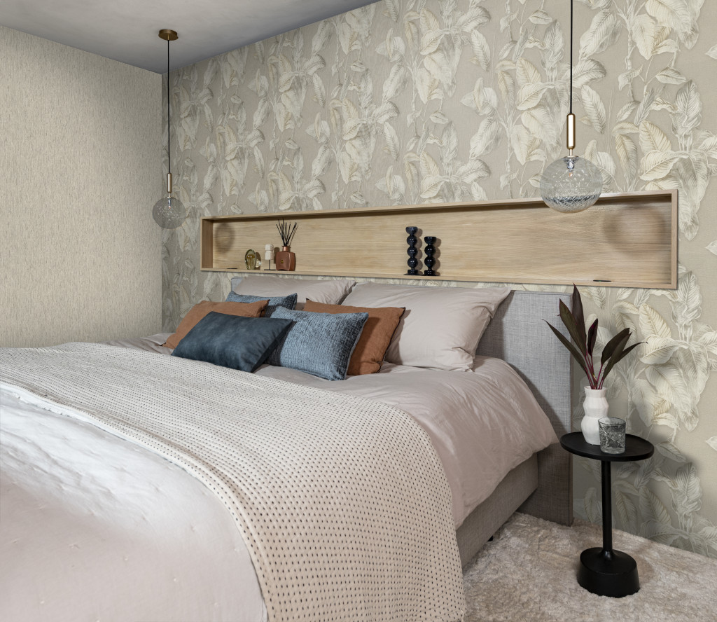 és természetközeli hangulatot áraszt. A lágy bézs alap finoman öleli körbe
