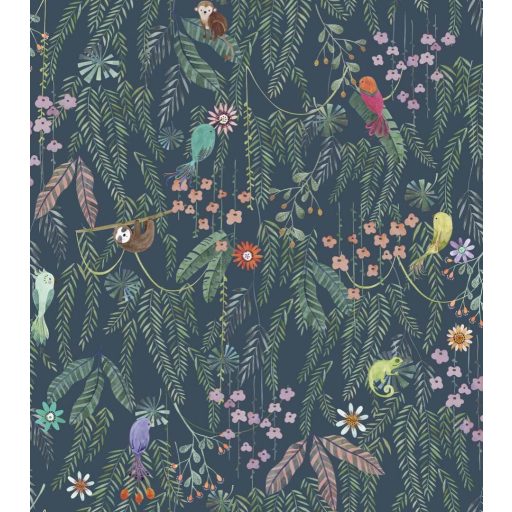 Trópusi erdő rejtelmeinek felfedezése digitális nyomású panoráma tintakék és sokszínű tónus tapéta