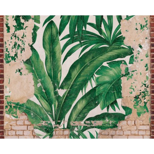 Trópusi levelek mindenhol felbukkanhatnak - most a téglafalon törnek át! bézs barna vörös és zöld tónus falpanel