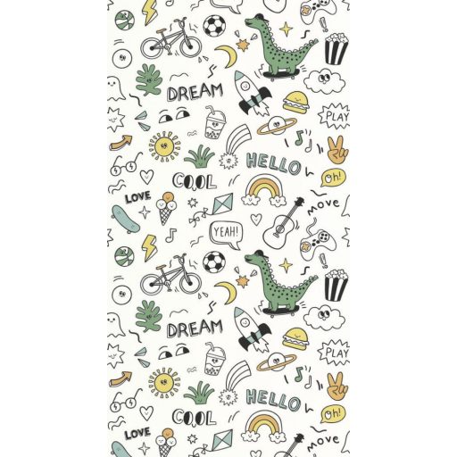 teli belső terekbe. A dizájnt apró színes illusztrációk és betűk laza