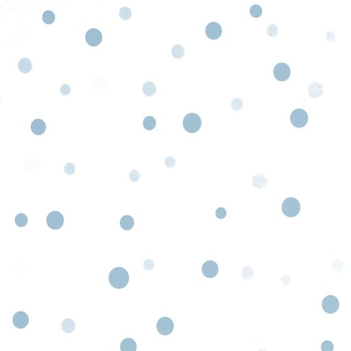 Változatos méretű és elhelyezkedésű pöttyök mintája fehér világoskék és kék tónus gyerekszobai tapéta