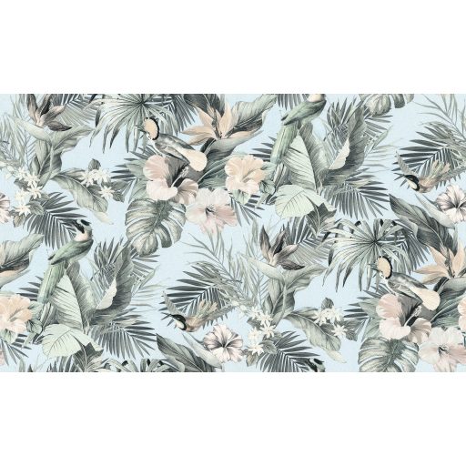 Mintázat : Vibráló hibiszkusz smaragdzöld pálmalavelek és kolibrik éneke