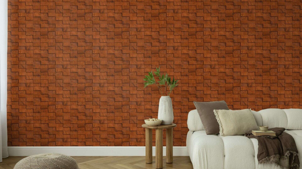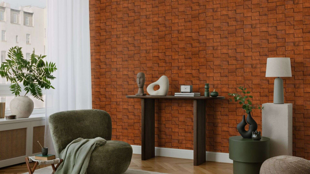 "tégla" egyedi mintázatot hordoz. A felület matt, koptatott, organikus - mintha valódi oxidált